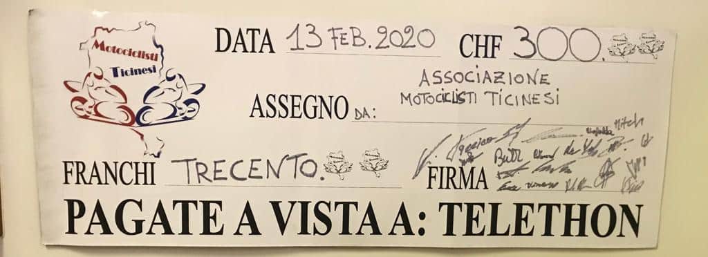 Telethon ringrazia l’Associazione Motociclisti Ticinesi per la donazione!